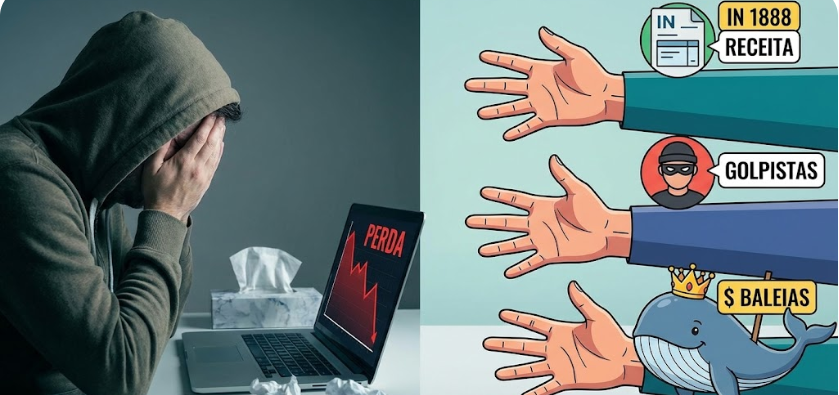 Descubra a verdade sobre investir em criptomoedas no Brasil. Um investidor autodidata revela os desafios do mercado P2P, shitcoins e a pesada IN 1888.
