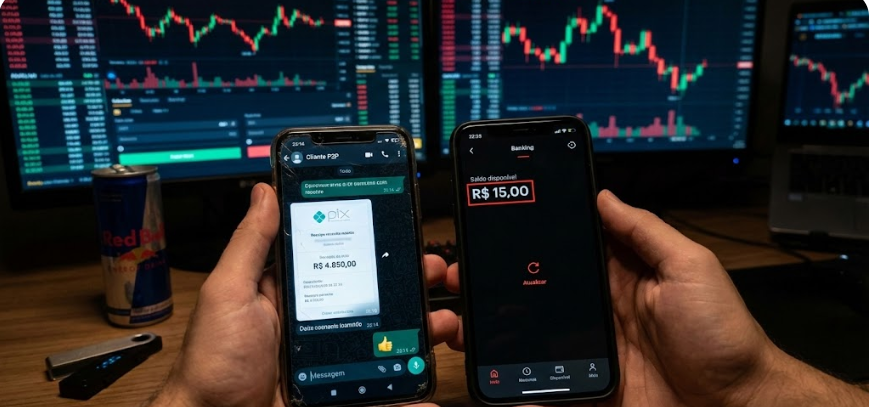 O comprador percebeu o dinheiro em dobro, pegou as criptos, sacou o Pix e sumiu. A plataforma lavou as mãos e não me deu nenhuma resposta até hoje. Hoje eu posso rir disso, mas no dia, o estômago embrulhou. Foram mais de dois dias inteiros de muito trabalho, girando capital sem parar, apenas para recuperar o montante perdido naquela fração de segundo de desatenção.